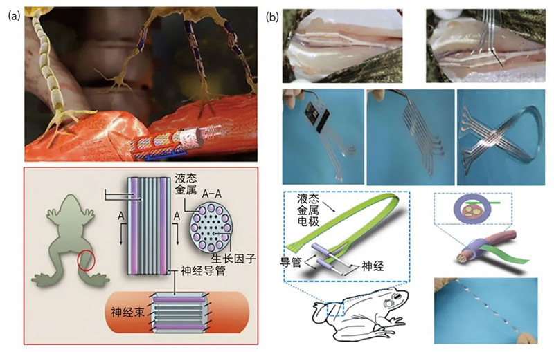 液態(tài)金屬神經(jīng)連接(a) [5]及生物機(jī)能修復(fù)(b)