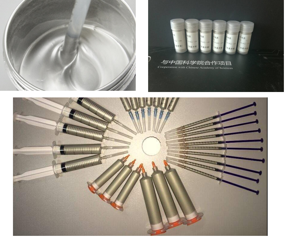 液態(tài)金屬導(dǎo)電膠是利用低熔點(diǎn)合金微納米粉為主要導(dǎo)電填料,通過(guò)加熱固化后液態(tài)金屬形成冶金互聯(lián),能夠形成穩(wěn)定的導(dǎo)電通路,大大降低銀粉的含量,成本遠(yuǎn)低于傳統(tǒng)銀膠。其特點(diǎn)在于:(1)與Pd-Sn合金、無(wú)鉛焊料相比,該導(dǎo)電膠具有環(huán)境友好、低溫鍵合、附著力好、細(xì)線印刷能力強(qiáng)等優(yōu)點(diǎn),可用于柔性電路連接;(2)與目前市場(chǎng)上的導(dǎo)電銀膠、銅膠相比,該導(dǎo)電膠導(dǎo)熱性能好、體積電阻率小、粘接強(qiáng)度高、耐候性好、低溫儲(chǔ)存穩(wěn)定期較長(zhǎng)等優(yōu)點(diǎn),(3)其制備方法簡(jiǎn)單、易于操作,成本低。