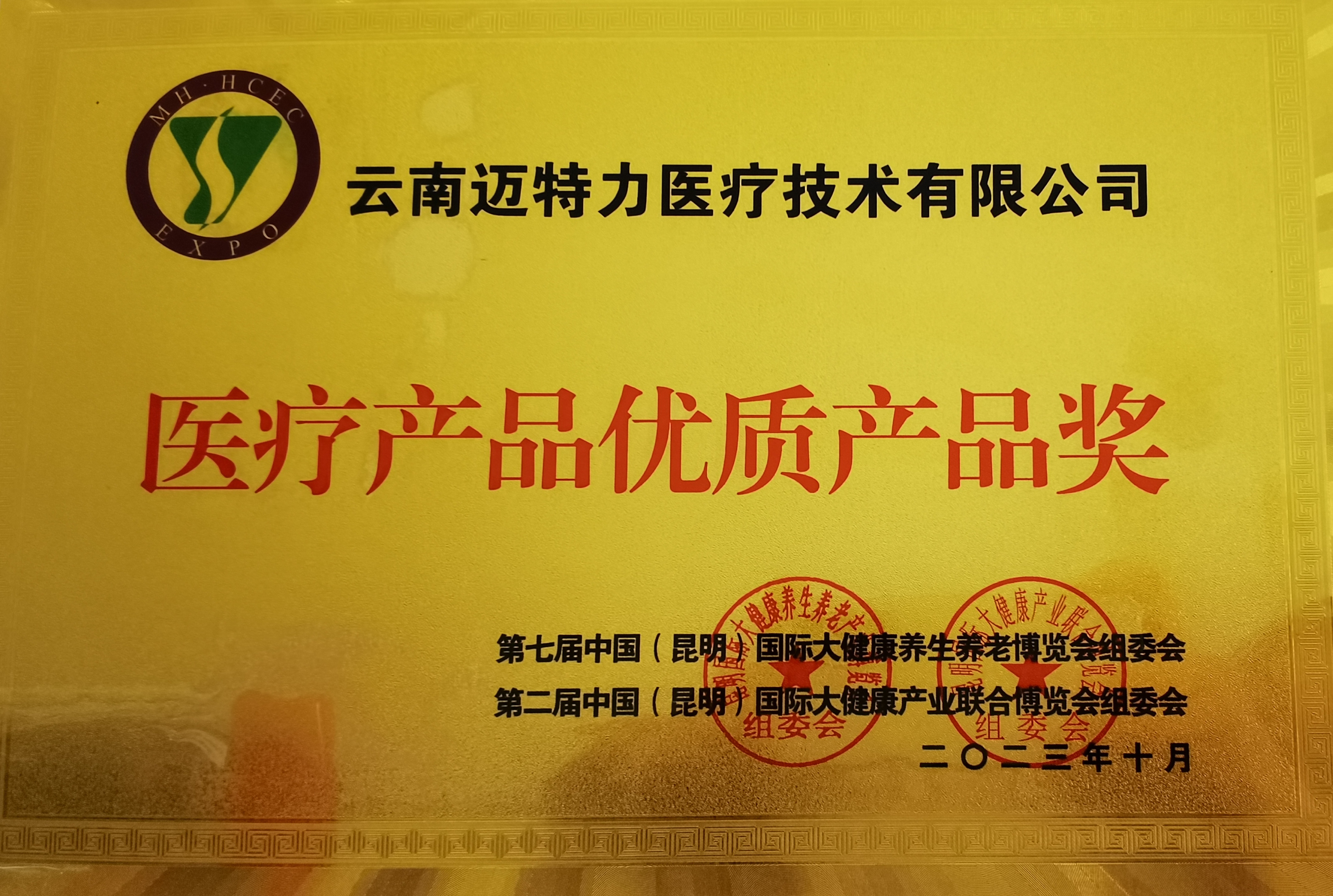 10月13日-16日,第七屆中國(昆明)國際大健康養(yǎng)生養(yǎng)老博覽會暨第二屆中國(昆明)國際大健康產(chǎn)業(yè)聯(lián)合博覽會在昆明滇池國際會展中心舉辦,來自省內(nèi)外的養(yǎng)老產(chǎn)業(yè)、大健康產(chǎn)業(yè)、旅居康養(yǎng)產(chǎn)業(yè)共有497企業(yè)參展,涵蓋了老年人養(yǎng)老健康生活的各個方面。我公司受邀參加并獲“醫(yī)療產(chǎn)品優(yōu)質(zhì)產(chǎn)品獎”。