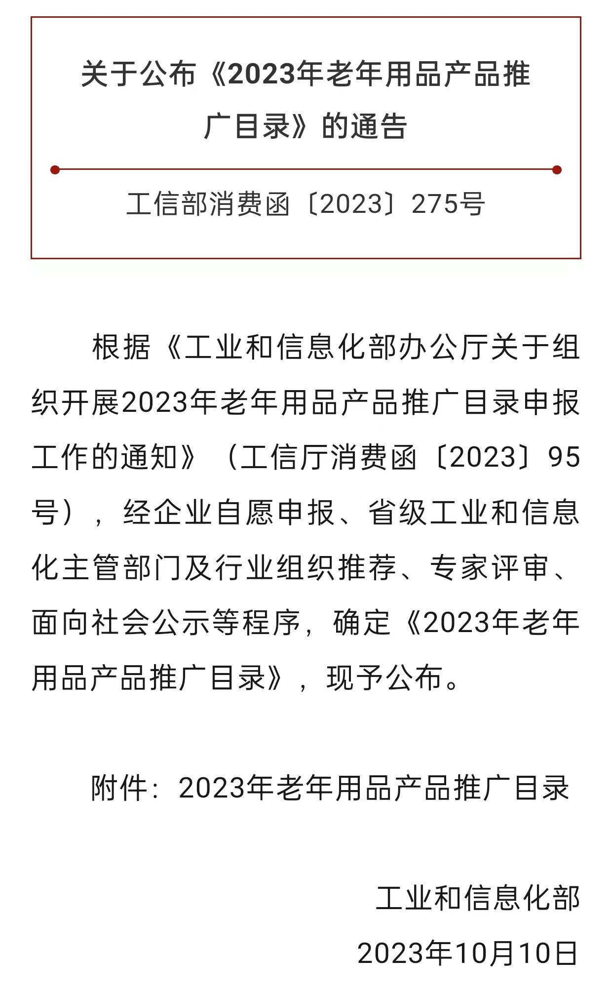 10月10日,工信部消費函﹝2023﹞275號通告了《2023年老年用品產(chǎn)品推廣目錄》,云南邁特力醫(yī)療技術(shù)有限公司的多功能腰部護具、愛宮衿、愛膝寶等三款產(chǎn)品入選該推廣目錄。