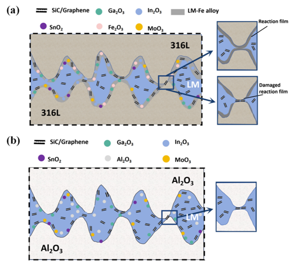 文章中創(chuàng)新性地研發(fā)了高溫性質(zhì)穩(wěn)定、分散穩(wěn)定、流動性好且抗磨抗蝕性優(yōu)異的高性能液態(tài)金屬基SiC/Graphene-Mo納米流體(LMNF),實現(xiàn)了工業(yè)級超寬/高溫30天長循環(huán)抗磨抗蝕驗證,匹配深海、深地、深空任務周期,有望應用于極端環(huán)境重大裝備。