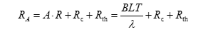 熱阻抗RA是材料自身熱阻R、填充固體表面微空隙不完全而導(dǎo)致的接觸熱阻Rc、固體界面與熱界面材料之間的界面熱阻Rth的總和,即可以認(rèn)為上述參數(shù)之間存在如下關(guān)系: