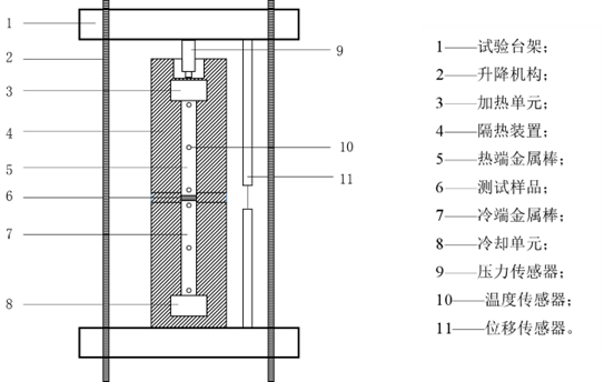 核心指標(biāo)熱阻抗和導(dǎo)熱系數(shù)的測(cè)定目前尚無(wú)專(zhuān)用的標(biāo)準(zhǔn)方法。當(dāng)前,業(yè)界通常參照ASTM D5470《熱導(dǎo)性電絕緣材料熱傳輸特性的標(biāo)準(zhǔn)試驗(yàn)方法》來(lái)進(jìn)行熱阻抗和導(dǎo)熱系數(shù)的測(cè)定,但鎵基液態(tài)金屬熱界面材料大多并非電絕緣材料,并不在該標(biāo)準(zhǔn)適用范圍內(nèi);而且該方法測(cè)量導(dǎo)熱系數(shù)時(shí)操作繁瑣,精密度不足;對(duì)膏狀和液態(tài)易流動(dòng)變形樣品的熱阻抗測(cè)定條件與實(shí)際工況條件一致性不足。除了樣品自身的性能外,熱阻抗還與測(cè)試設(shè)備的狀況、特別是測(cè)試頭端面的光潔度、平面度相關(guān),故國(guó)內(nèi)外不同廠商根據(jù)ASTM D5470制造的導(dǎo)熱儀水平參差不齊,實(shí)驗(yàn)室間再現(xiàn)性差,這也導(dǎo)致某些市售的產(chǎn)品熱阻抗嚴(yán)重失真。本標(biāo)準(zhǔn)規(guī)定了熱阻抗的測(cè)量方法,明確了對(duì)如圖5所示的熱阻抗測(cè)量裝置的測(cè)試頭端面光潔度、平面度要求,規(guī)定測(cè)量厚度的位移傳感器精度。相比于ASTM D5470,測(cè)試頭表面粗糙度要求由0.4 μm提高到0.1 μm,平面度要求由5 μm提高到3 μm。