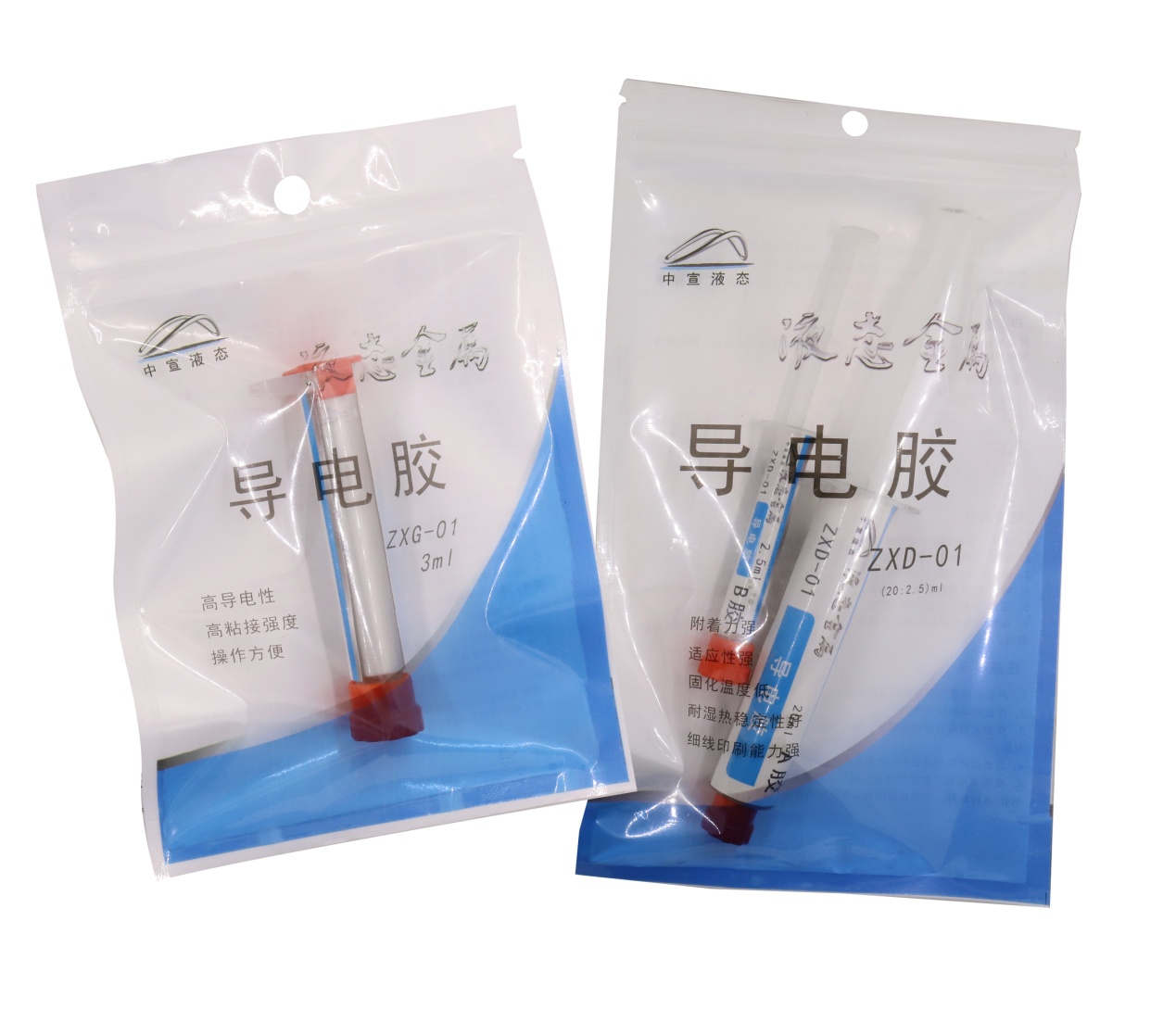 液態(tài)金屬導電膠是以液態(tài)金屬作為導電填料,與基體樹脂混合制備而成的干燥固化后具有一定導電、導熱性能的膠粘劑。
